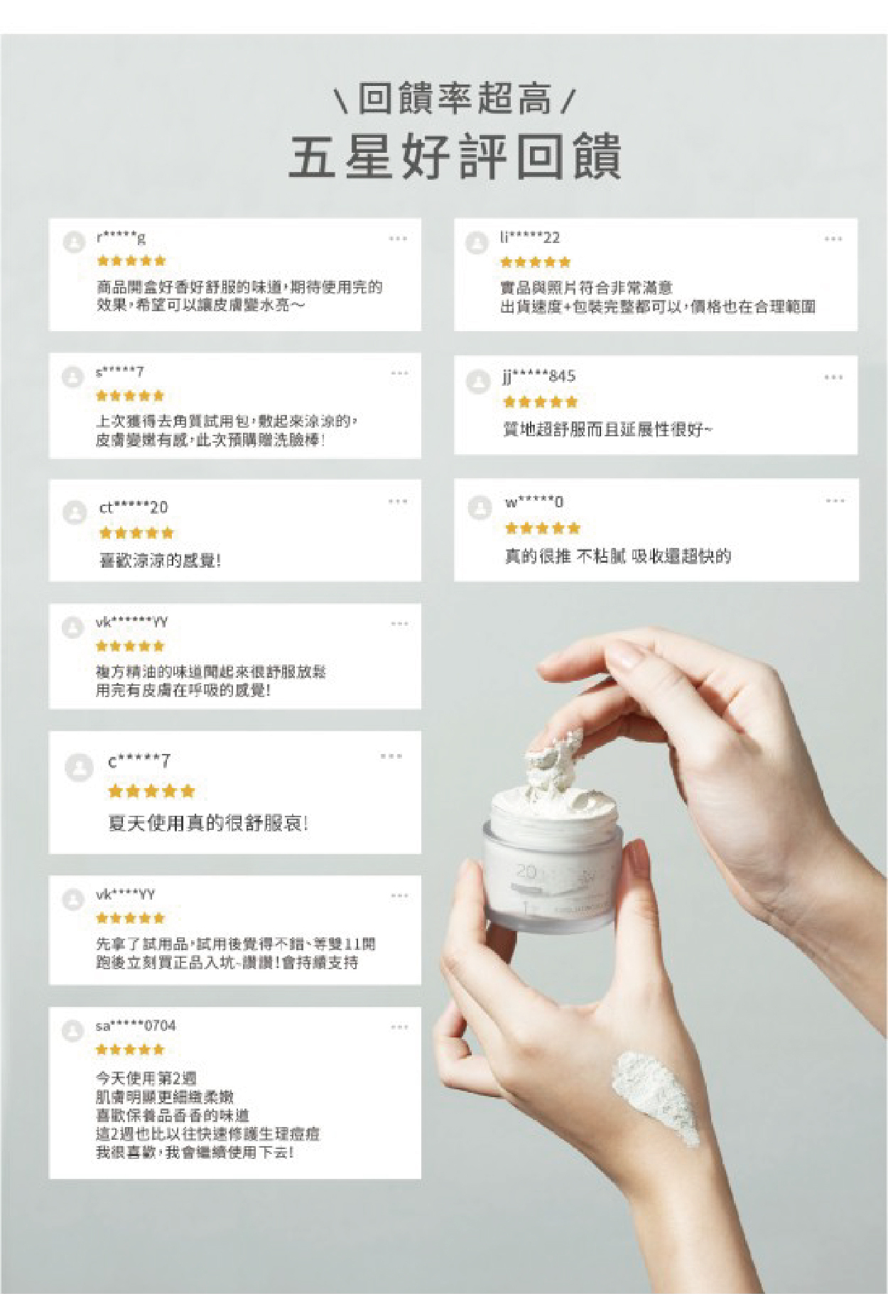 質地絲滑柔嫩、容易塗抹且延展性極佳,給予肌膚保濕、舒緩、平衡調理、穩定鎮靜的多合一效用,讓肌膚擁有滑嫩、細緻的狀態。