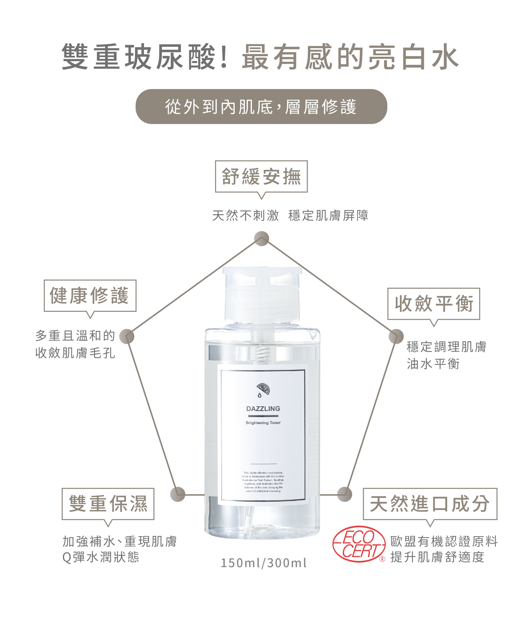 使用“雙重玻尿酸”為基底的化妝水萃取天然植物的成分,降低皮膚油脂代謝不平衡的現象,