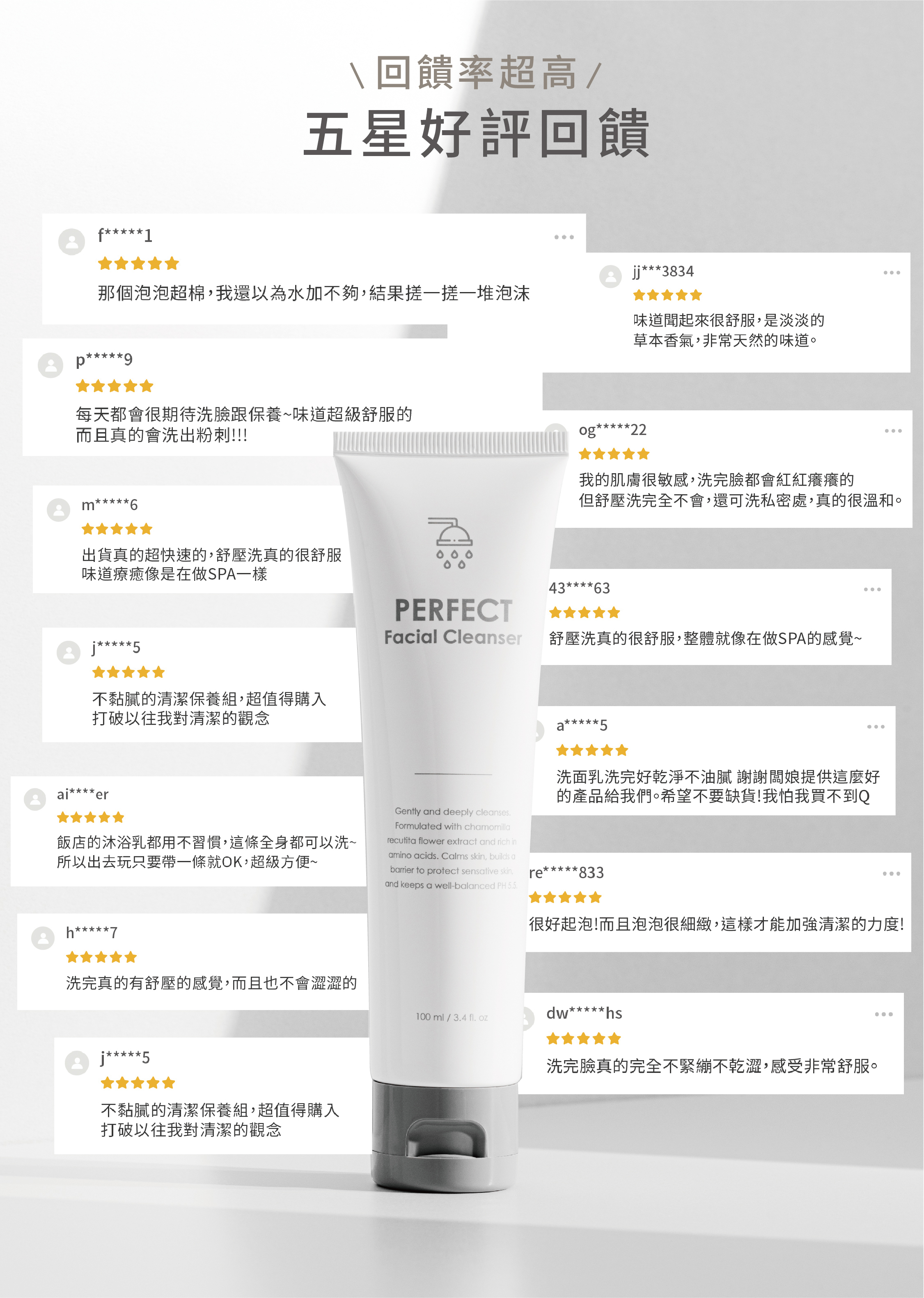 15%胺基酸活性成分,改善肌膚的保濕問題與肌膚油水平衡、鎮靜舒緩、保濕Q彈、產品品質保證。